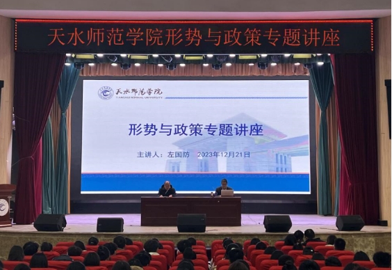 12月21日下午,党委常委、副校长左国防为tyc8722太阳集团城2023级学生讲授题为《大力推进现代化产业体系建设》的形势与政策课。