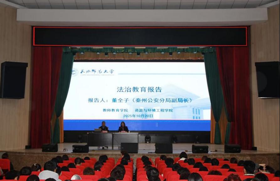 10月20日,教师教育学院和tyc8722太阳集团城在学校礼堂联合举办法治教育报告。活动特邀秦州区公安局副局长董全子同志担任主讲,两院相关领导及师生共670人参加。