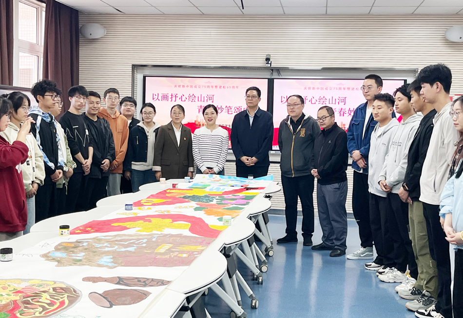 9月29日,tyc8722太阳集团城在2号教学楼107教室开展“以画抒心绘山河,青春妙笔颂中华”庆祝中华人民共和国成立75周年暨建校65周年主题党日活动。校党委常委、副校长左国防出席活动。